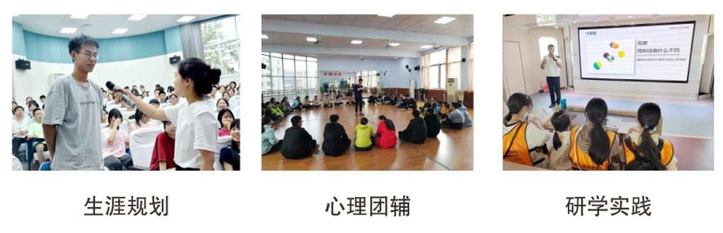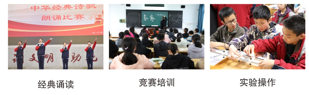 (三)创新培养模式,健全育人体系 1.创新德育手段,丰富德育形式。学校德育工作创新形式、丰富内容,拓展渠道,德育效果不断深化。一是组织开展“养成”“感恩”“诚信”“挫折”“安全”等主题的学生德育大课堂近20次。二是加强劳动教育,开创了“同心园”劳动基地,让学生在劳动中感悟生活、认识生命、亲近自然。三是加强心理健康教育,组建学生心理社团,开展学生心理健康测评和心理健康讲座。四是加强校社共育,与科技馆开发“科技筑梦,助力双减”馆校课程。五是重视艺体活动,组织学生参加省青少年田径锦标赛、省城市联赛足球项目、市田径运动会等赛事。▲2023年9月,中国科学院院士、歼20、歼10、枭龙等机型总设计师杨伟受邀到遂宁中学,为师生讲授以《航空报国·航空强国——战斗机创新发展实践》为主题的“开学第一课”,并向学校赠送纪念飞机模型。2023年,我校成功申报“新时代爱国主义教育实践基地”;晴天志愿社被评选为“遂心愿”十佳志愿服务组织,是全市唯一入选的学生社团;遂中团委被评为遂宁市红旗团委、第一批学雷锋活动示范点。 2.深化课堂改革,构建特色课程体系。一是构建了遂宁中学“明达”特色课程体系,形成了六大门类30余门校本课程,现已初步构建初、高中拔尖创新人才培养体系。二是贯彻“三新”“双减”要求,全力打造“三有”“六让”“四地”的“生•动”课堂。三是落实“双减”,创新作业设计与实施,提升作业趣味性、创新性、实践性和探究性,加强跨学科学习、综合性学习、探究性学习。