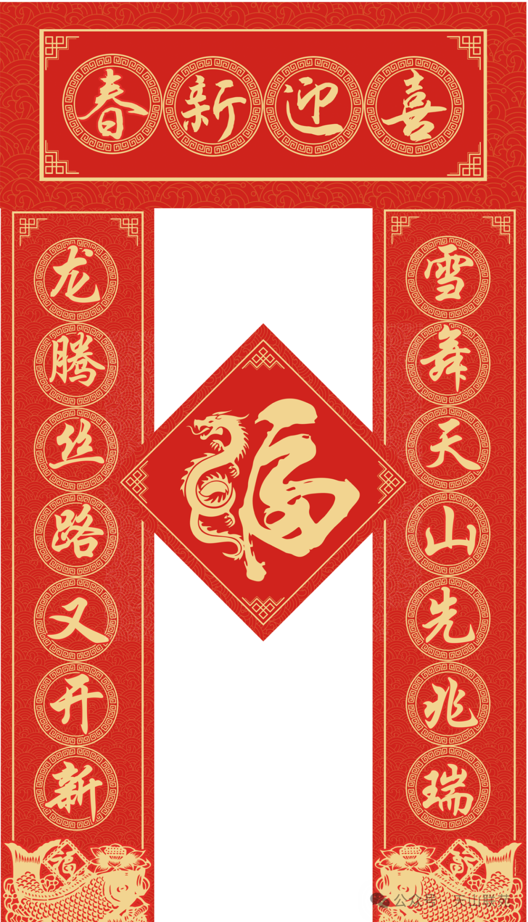 新年臻瑞象,看天山跃马,丝路腾龙。
