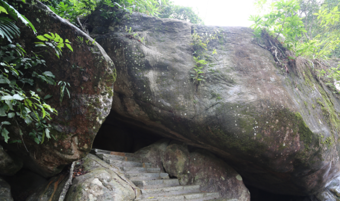 通天岩:远在几百万年前,地壳运动过程中,山上巨石滚下山涧,与地面形成一巨大岩洞。此岩洞由下往上穿洞而过,在黑暗的岩洞里,一步一个台阶走向顶部,走向光明,象征步步高升,事事顺利。